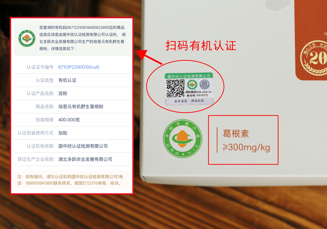✅培恩元20年有机野生葛根粉,葛根素含量≥300mg/kg,葛根素与总黄酮含量高于国家标准10倍