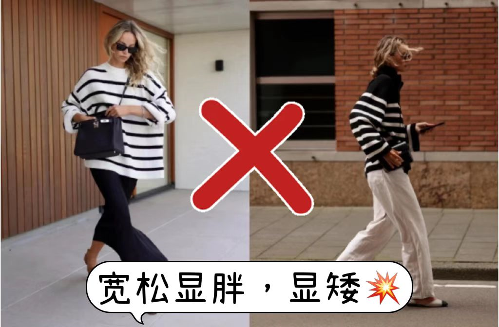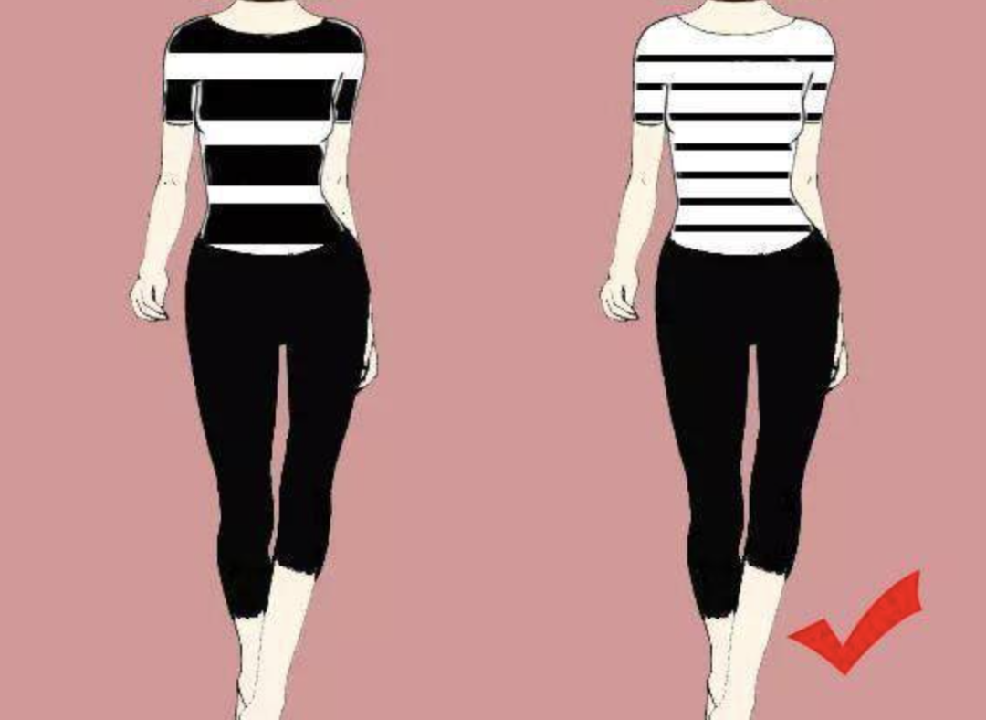 太粗的条纹在视觉上会横向放大身型从而显得臃肿: