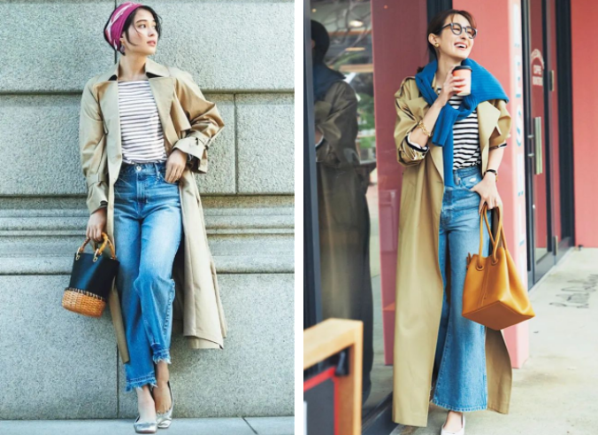 风衣+条纹衫,经典组合,尽显浪漫文艺高级感。