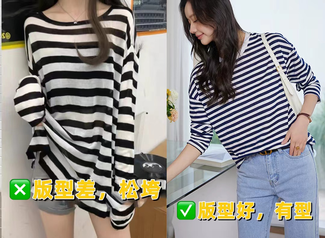 尽管市面上的条纹衫有很多,但不同款型、面料的上身效果真的会差很多。