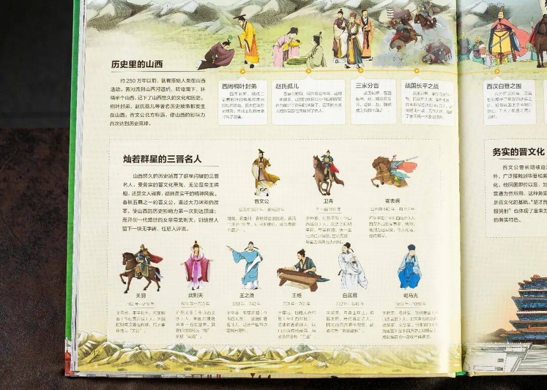 以山西省为例,首先,结合地图板块,宏观认识山西的历史文化、人文景点,和环境特征。