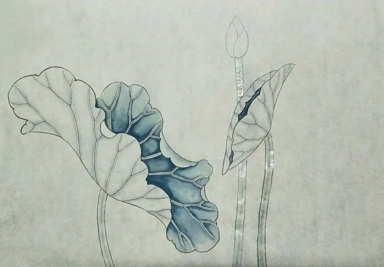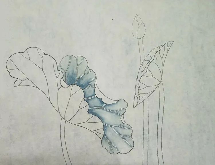 第三步:荷叶反面和叶茎用淡花青分染,荷叶正面继续分染一遍。
