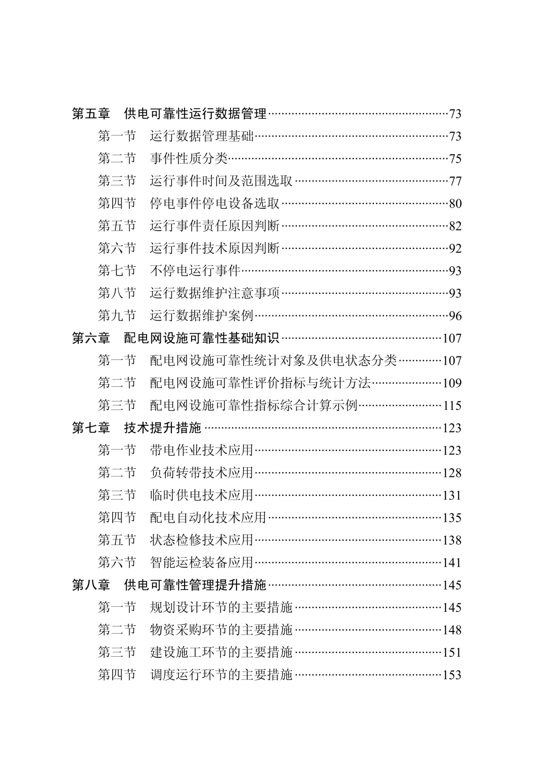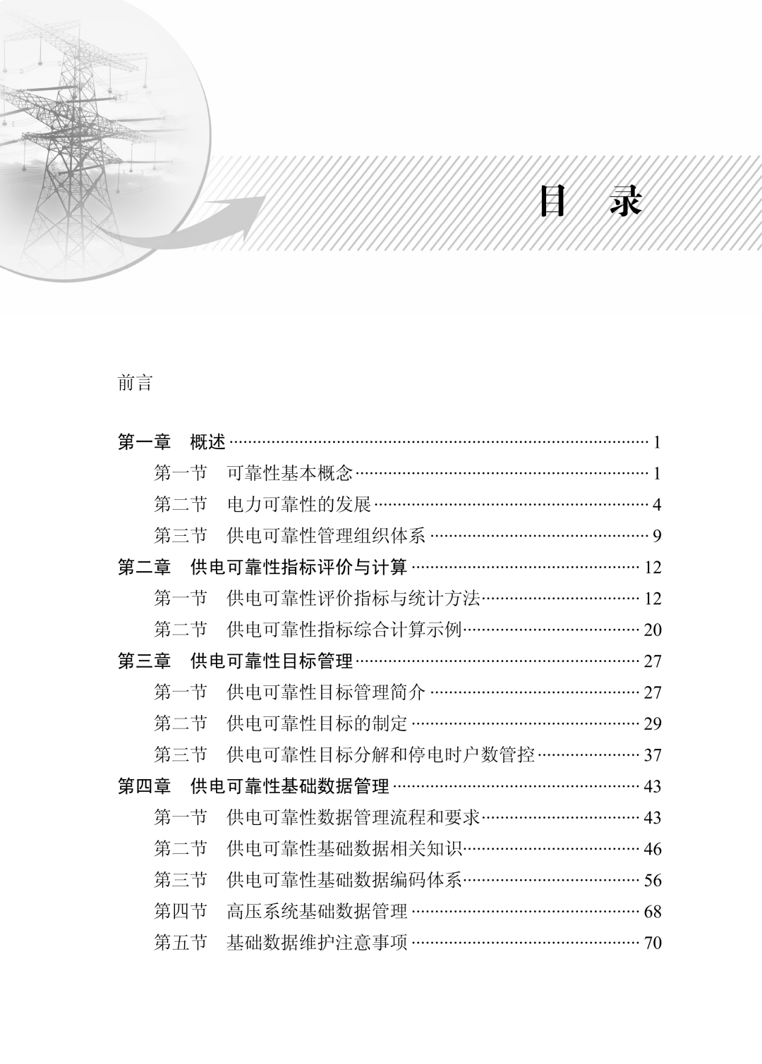 本书围绕供电可靠性管理展开,共十章,第一章概述、第二章供电可靠性指标评价与计算、第三章供电可靠性目标管理、第四章供电可靠性基础数据管理、第五章供电可靠性运行数据管理、第六章配电网设施可靠性基础知识、第七章技术提升措施、第八章供电可靠性管理提升措施、第九章供电可靠性数据分析与应用、第十章供电可靠性监督检查及评价。