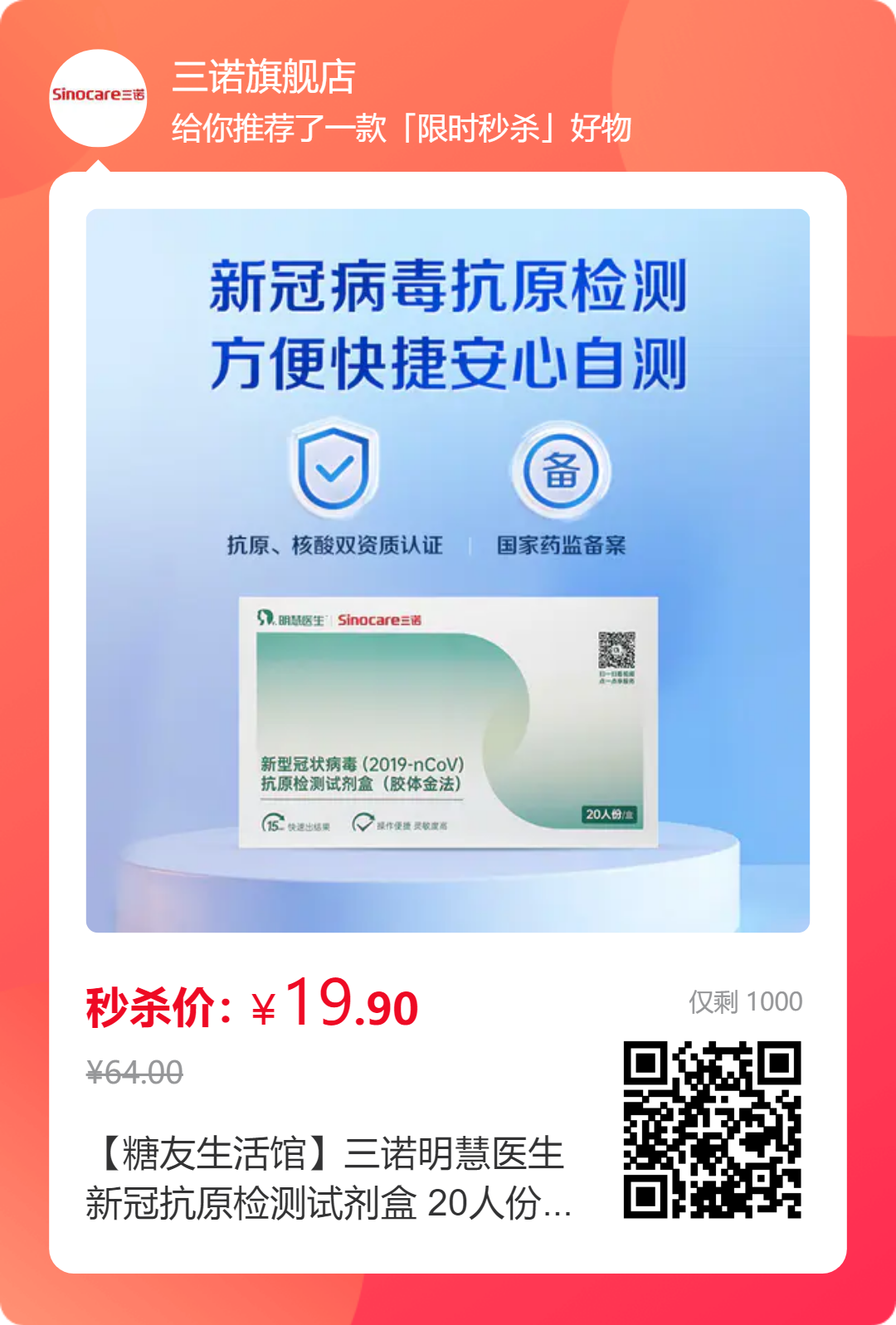 新一轮新冠已经来临,抗原检测特惠购,家中检测更安心