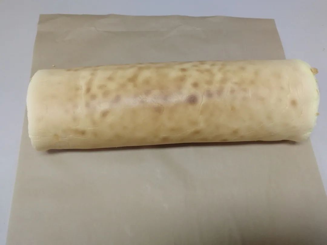 挤上沙拉酱,将蛋糕卷起,并定型,可刀切装饰