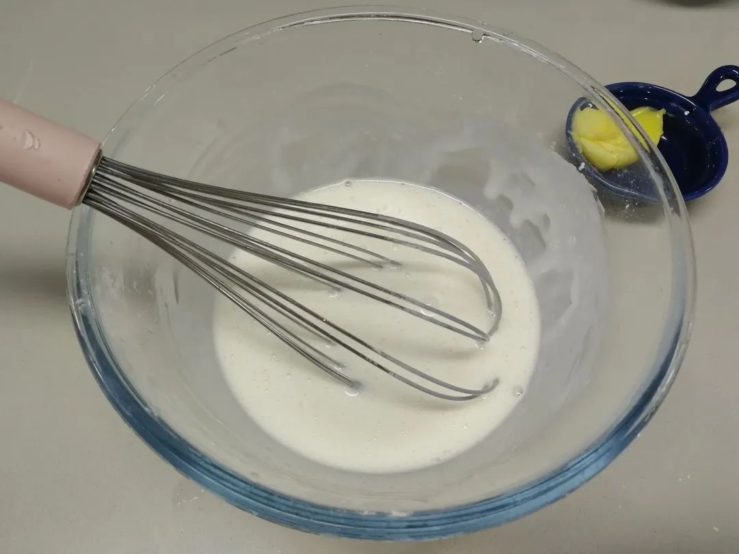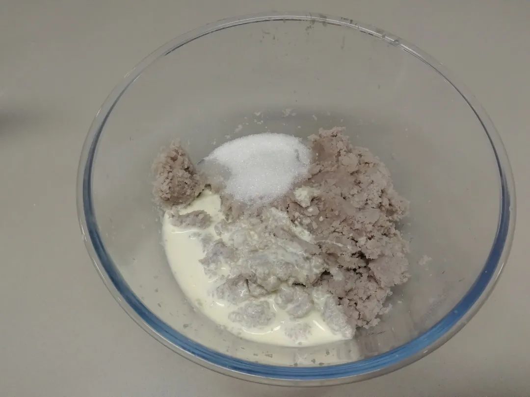 将糯米粉,玉米淀粉,白砂糖,牛奶称量一起,将面糊搅拌均匀