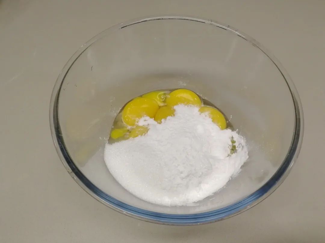 虎皮蛋糕卷食材集合,将蛋黄,玉米淀粉,白砂糖混合一起