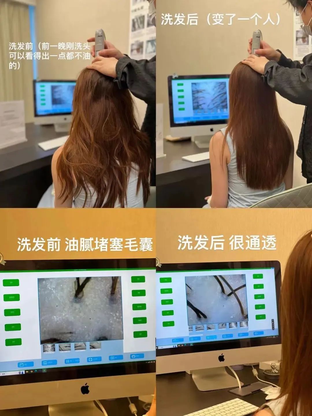 再看看个人使用后的效果,把堆积在毛囊上油脂、头皮屑全都“搓”出来。