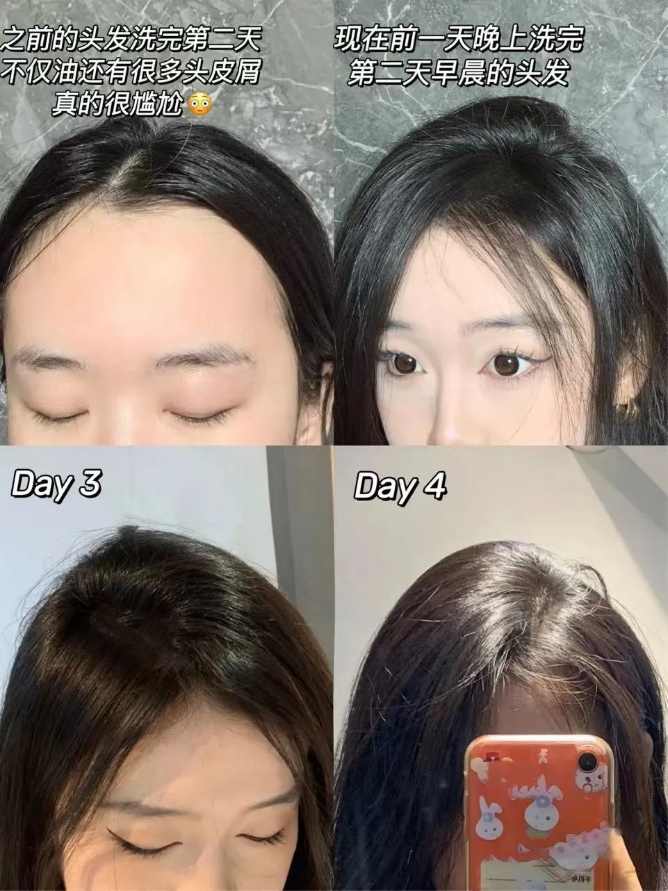 最尴尬的是头油!扛不住两天就油到发腻,不坚持每天洗头就得顶着一头黏腻软塌到闪闪发亮的头发,真的好显邋遢。