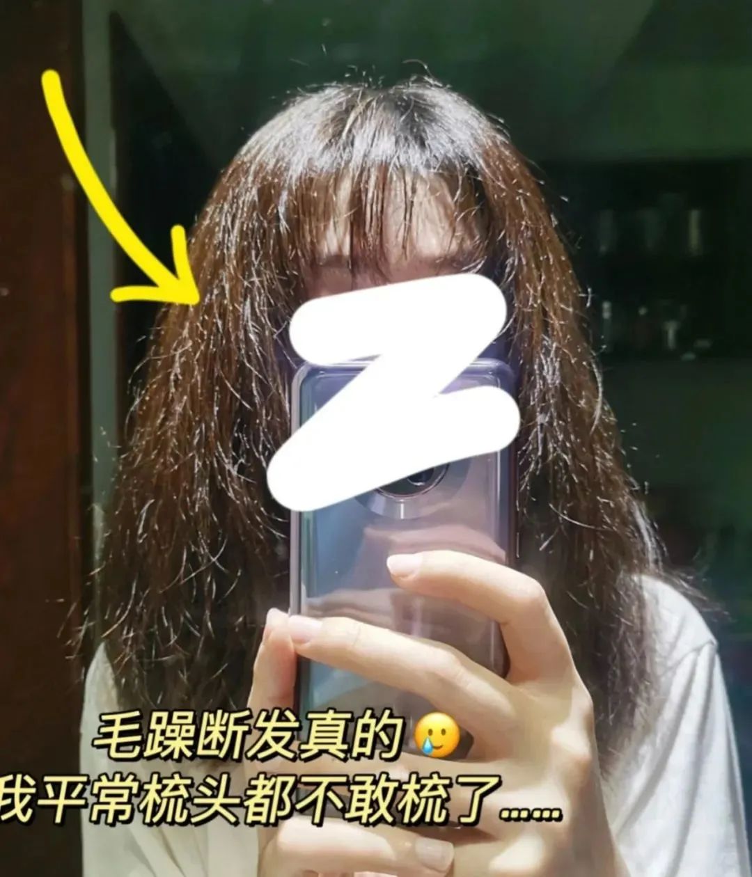 结果打开摄像头,干枯、毛躁的发质会通过镜头放大好几倍!