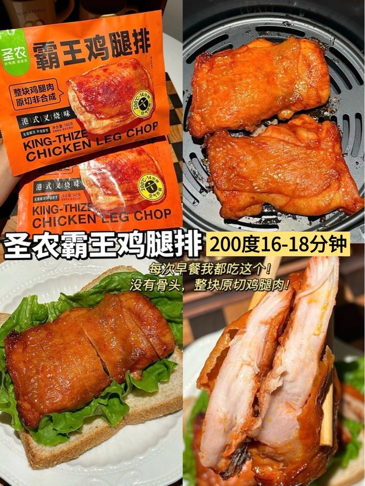 3️⃣圣农霸王鸡腿排(家用炸锅推荐200度18分钟,中途翻面)