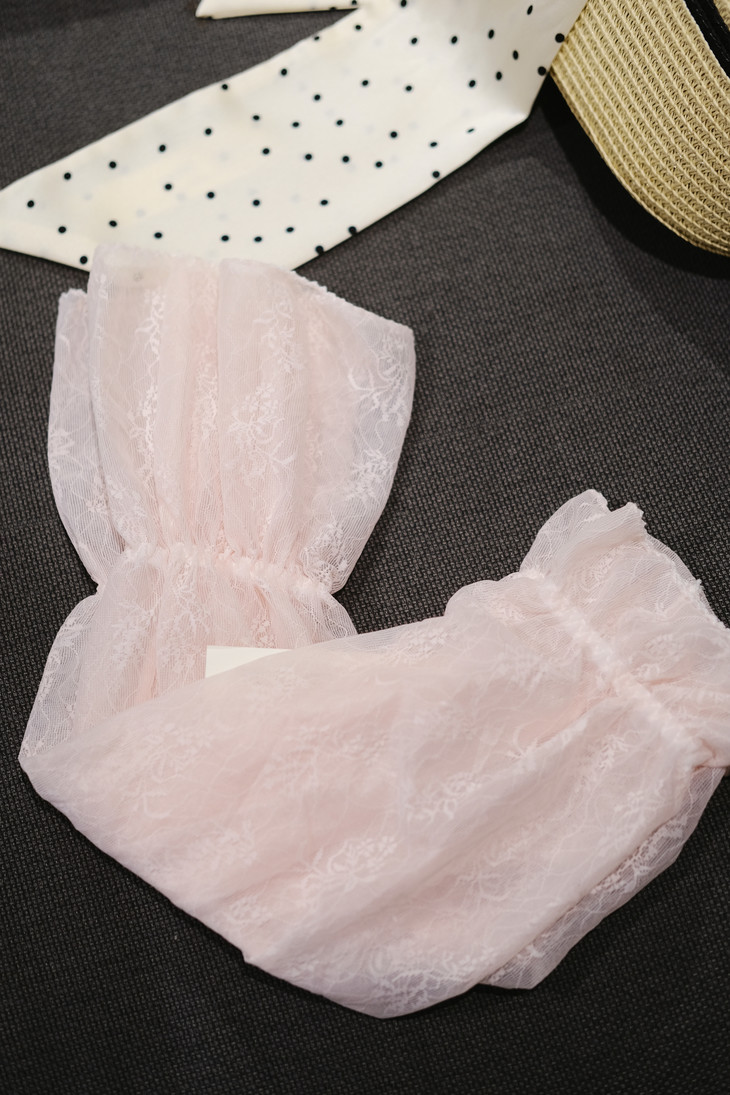 1、网纱蕾丝款:香槟粉/珍珠白两种颜色可选, 浅色透肤不闷汗,透气防晒不粘腻,举手投足自带柔光滤镜。
