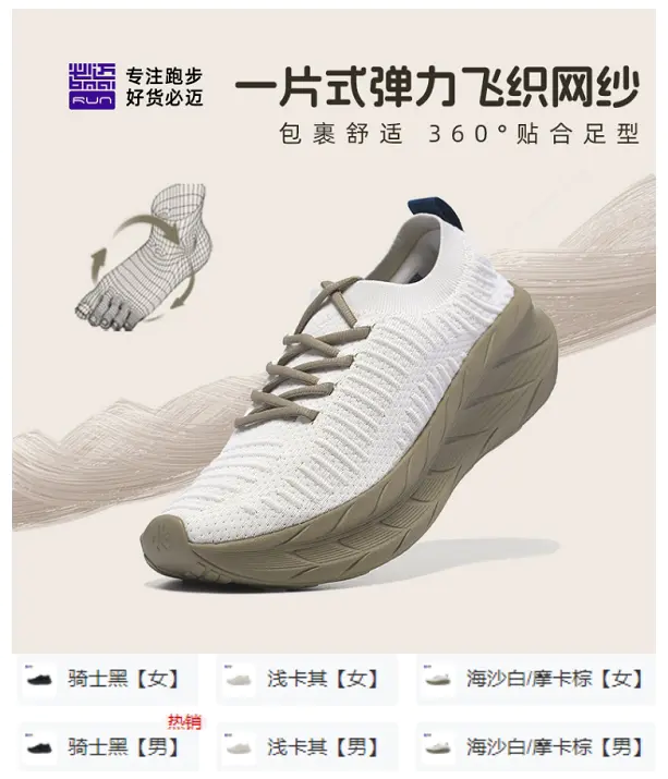 推荐理由:立体透气系统+弹力袜套包裹,懒人必备!60%高回弹中底+后跟港宝支撑,防崴脚。5mm坡差,重心自然向前滚动,恰到好处舒适。