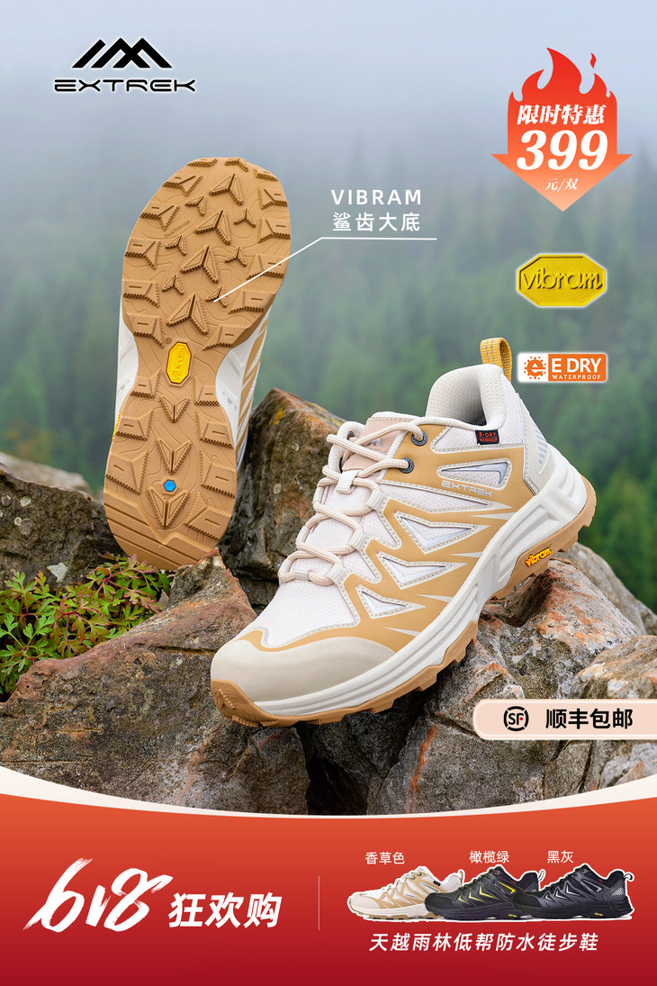 推荐理由:VIBRAM 鲨齿大底,防滑抓地无惧各种地形。COOLMAX速干内衬,排湿、抑菌防臭。