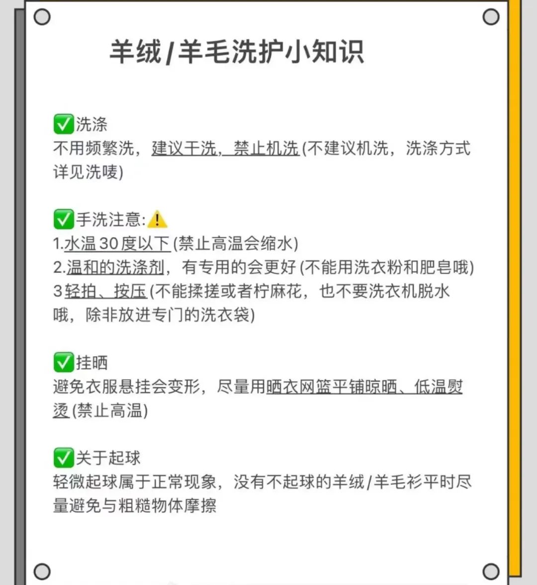 不过因为衣服是纯羊毛的,所以多少还是会有轻微起球问题,大家在平时清洗时也要注意以下事项: