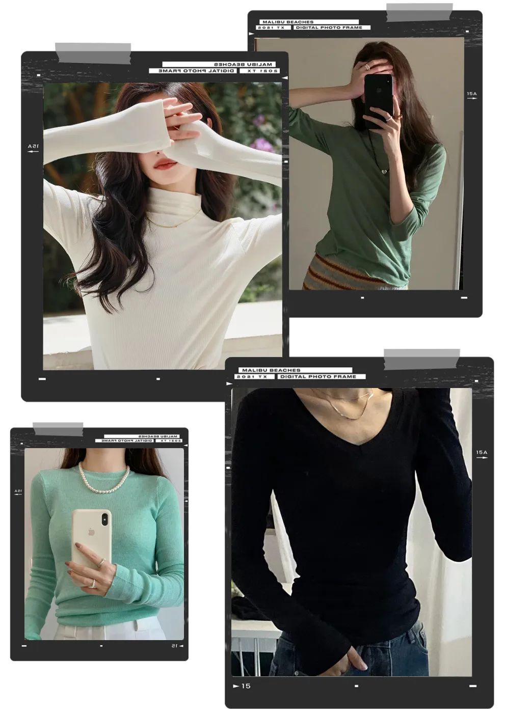时下流行的V领、半高领、圆领、镂空全都有做,满足姐妹们的不同穿着搭配需求,买一件完全不够看!