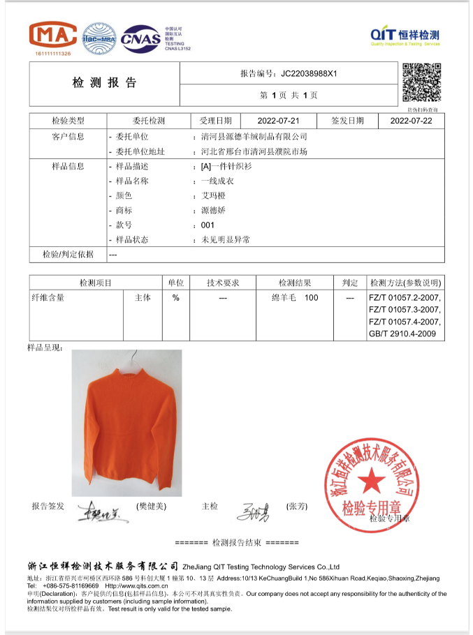 100%全羊毛打底衫,有专业机构的检测报告为准,到手就知道有多买的有多值。