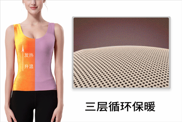 这款保暖背心之所以保暖性好有两大原因:①自发热升温;②高密蓄热。