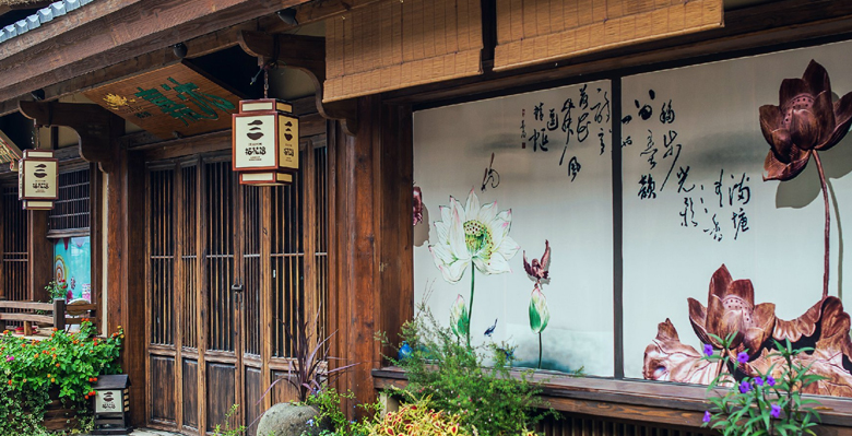 据不完全统计,自从唐宋以来,历代文人雅士和诗僧禅师们,留下了3万多首禅诗。拈花湾从这3万多首禅诗中,选取适用当代社会、契合江南物候、对应本地场所的经典作品及其章句,将其中的禅意、禅趣、禅境转化为实实在在的生活场景、文化空间和功能设施。