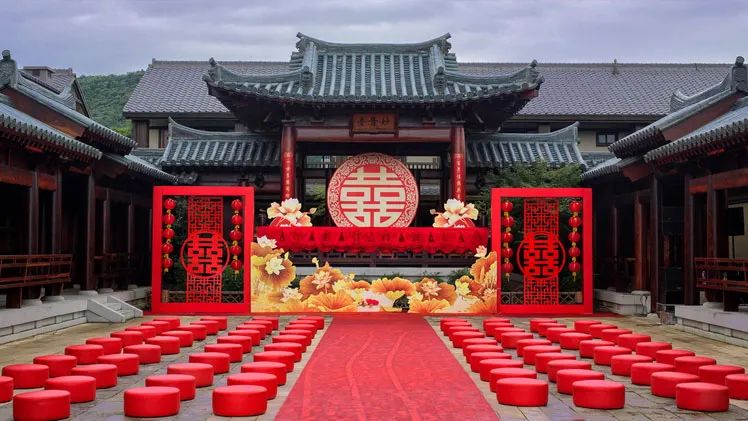 拈花广场、妙音台下,是拈花湾传统婚礼的举办地。挑盖头、牵红绸、盟誓言、撒喜糖……当禅意风遇见浪漫风,融合东方禅意元素,让婚礼与众不同。