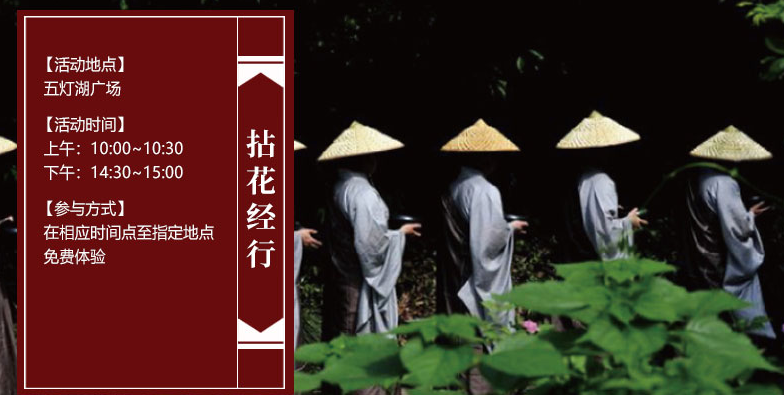 “禅行”之旅中,禅文化主题商店也是重要的活动组成部分,以这些商店为舞台,不定期邀请法师和老师来做茶、香、花、琴等禅艺的展示,成为水秀之外的禅文化体验亮点。