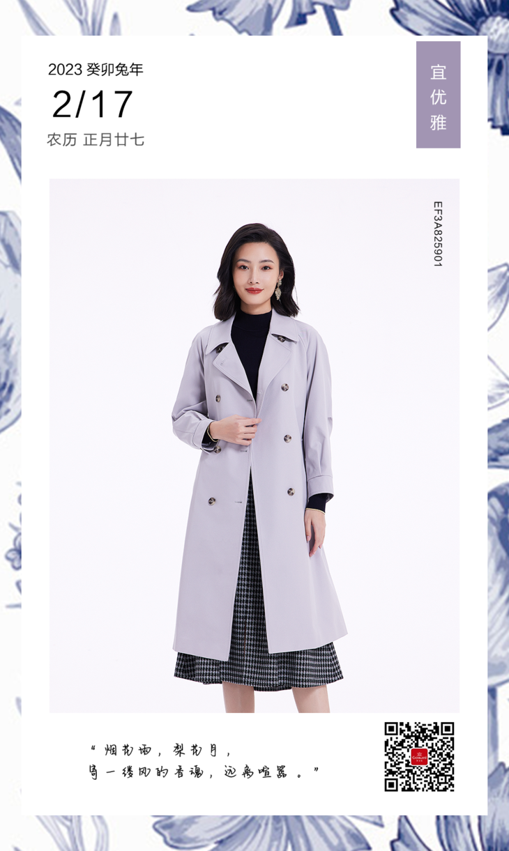 经典双排扣翻领风衣,利落领型时髦而百搭,整体在廓形中强调腰部、袖口、背部的结构与线条,结合挺括剪裁,上身随性又舒适实穿。