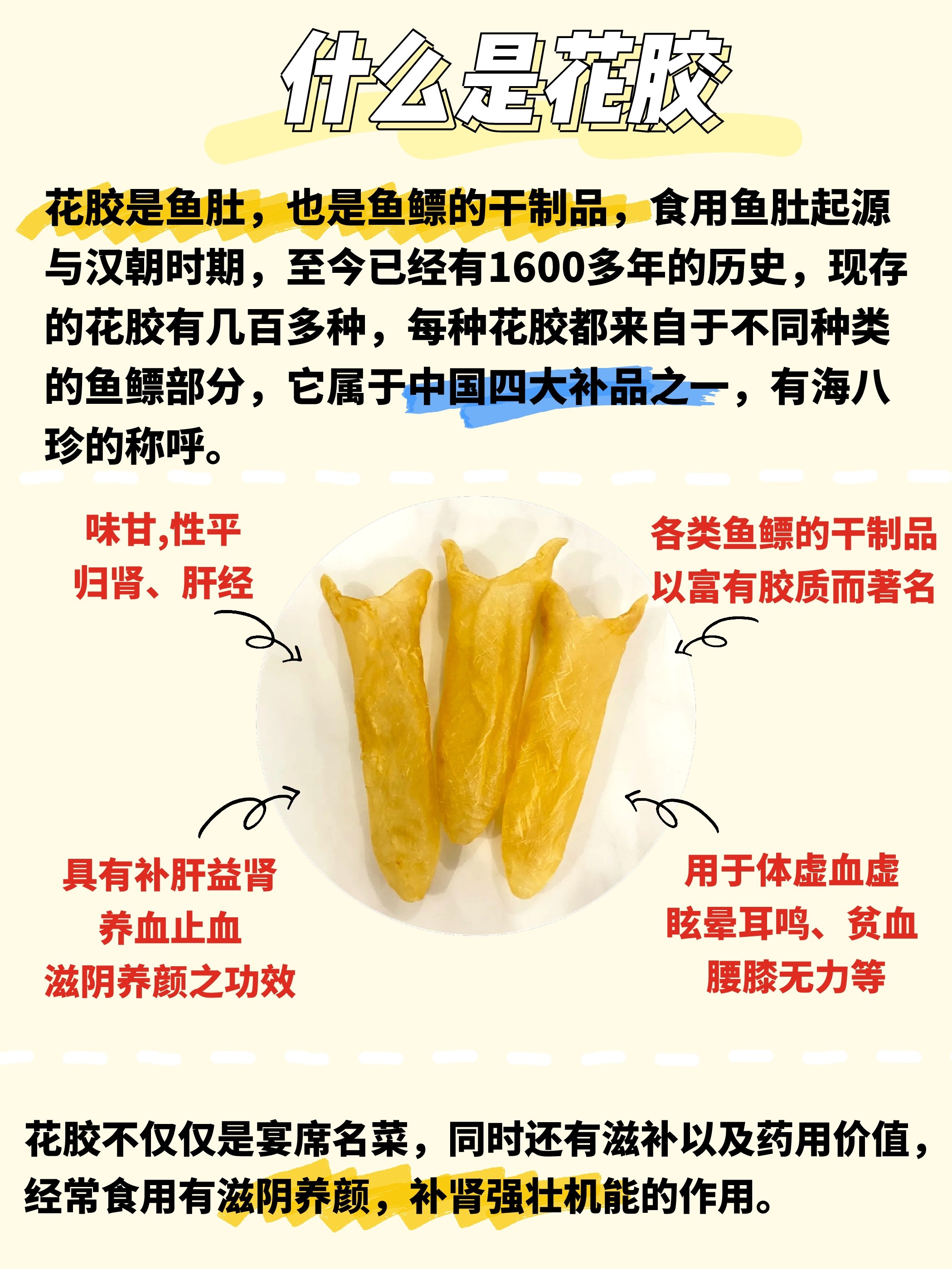 花胶富含高级蛋白质、多种维生素、钙铁锌硒,对女性好处多多,坚持食用可以让皮肤保持滋润有弹性~