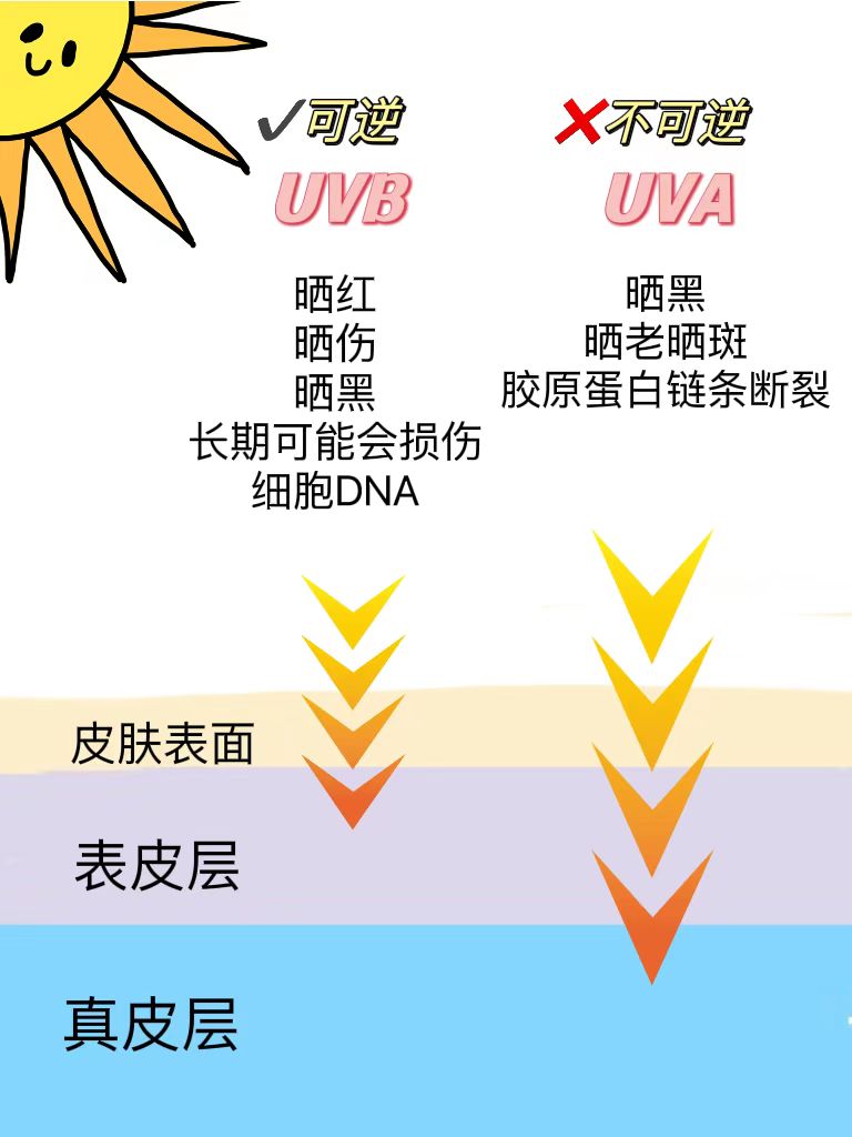 UVA带来的损伤很难修复,一旦有了晒斑,除非用科技手段不然很难消除。
