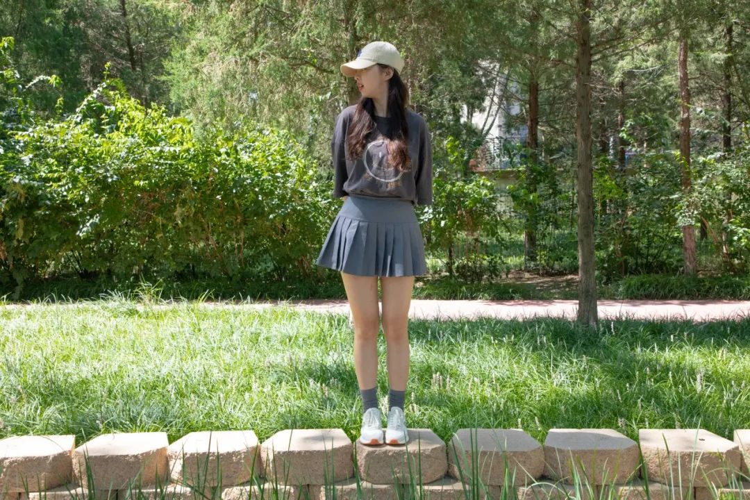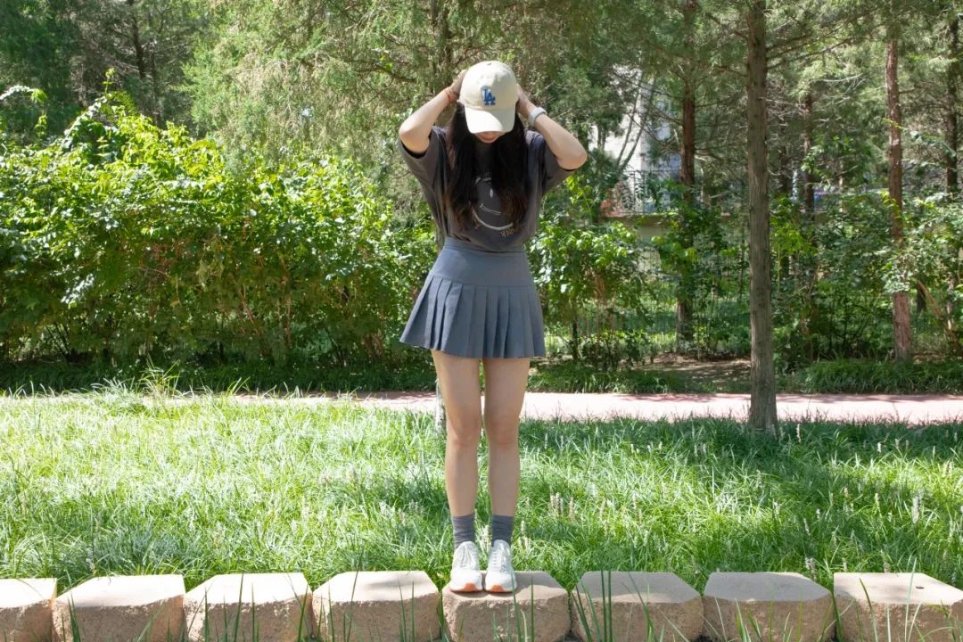 我们真人同事试穿了一下,配短裙减龄可爱,修饰腿型拉长比例;