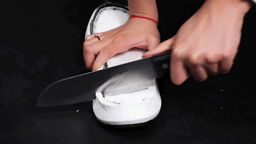 再来看TA的缓震效果:用锤子用力敲击,底下的盘子一点没有裂纹,真的太能扛了!