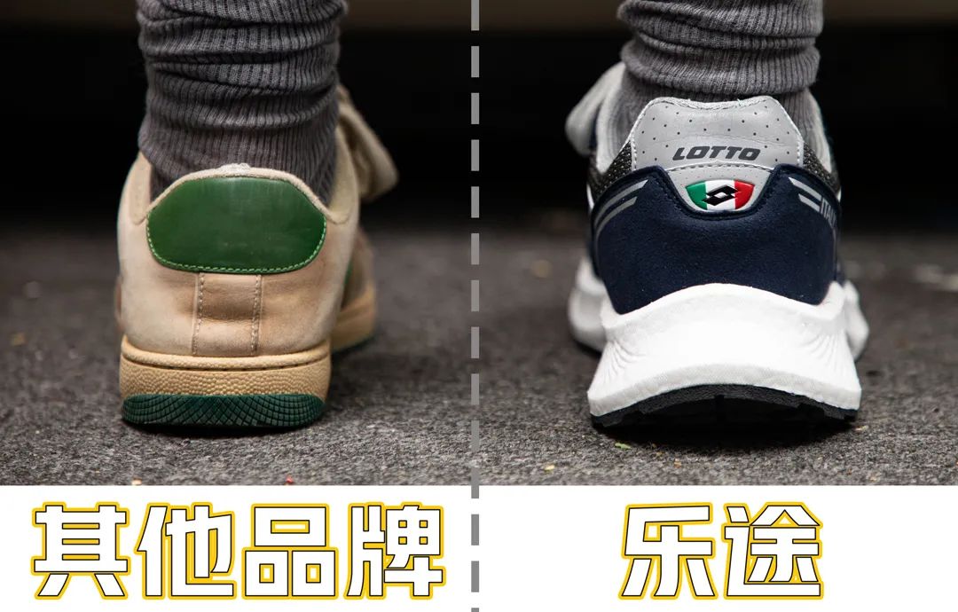穿lotto运动鞋时就不会这样!因为lotto运动鞋还设置了后跟保护!能明显感觉到有挡片在矫正后跟位置,双脚也变得更有支撑力了!