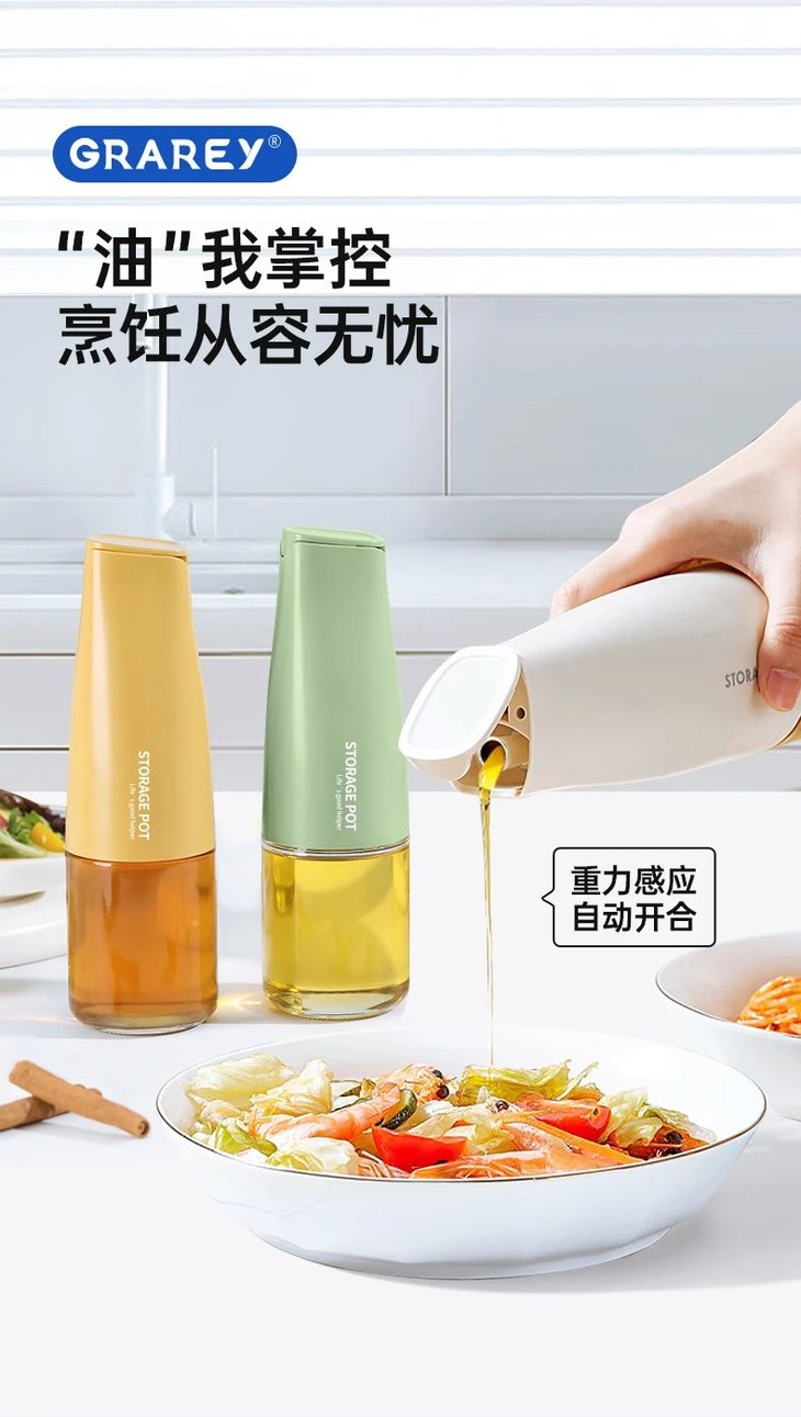 “添油加醋”一手搞定!【GRAREY格瑞亚-自动开合油壶】重力自动开合,一滴都不会漏!