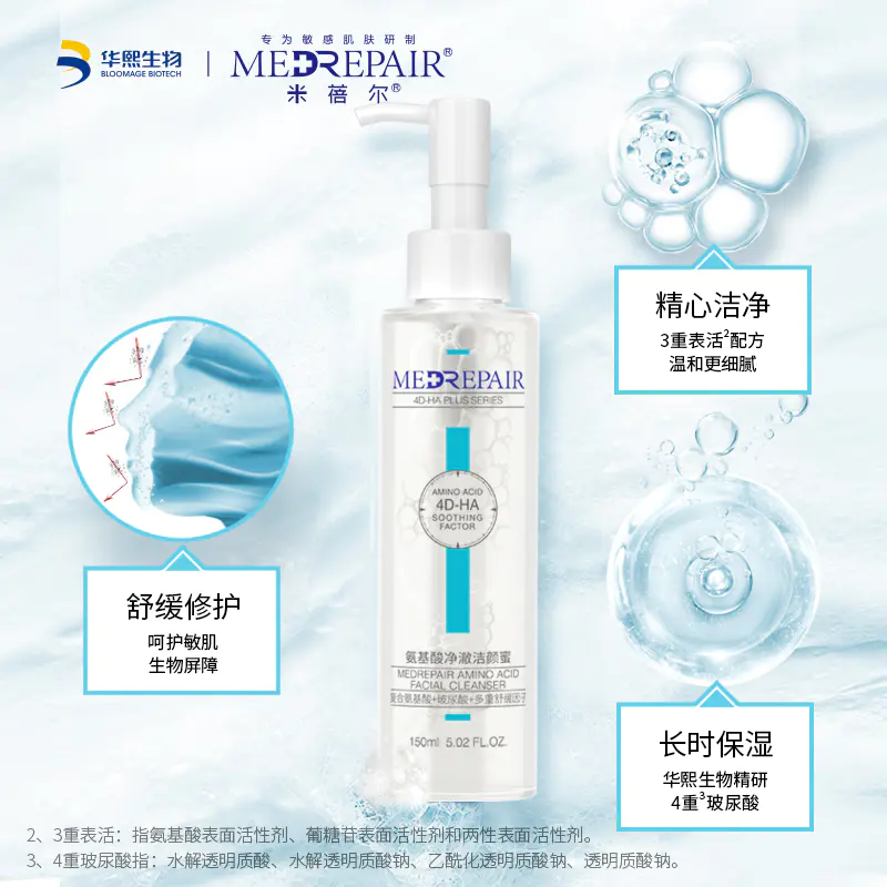 华熙生物集团旗下——米蓓尔MEDREPAIR,源自华熙生物多年潜心研发,“精于修复,专注美丽”为消费者解开敏肌密码,4D-HA四重活水创专利配方取代市场主成分,提供解决敏肌问题的方案。