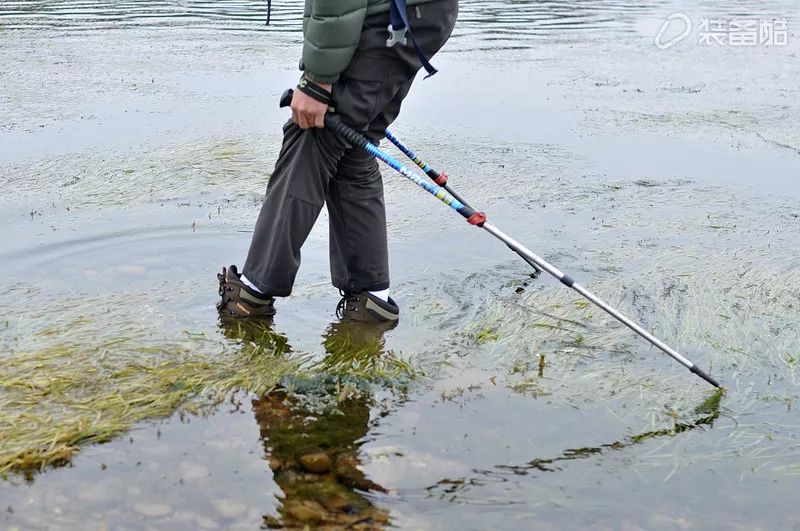 这个就是大纹路V底的缺陷,因为凹凸较深的鞋底在光滑的路面没有通过咬合增加摩擦,因此会表现得抓力不足。此时可以借助登山杖,让行走更加稳健。