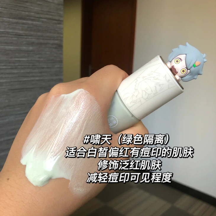 🍏绿色隔离适合白皙偏红有痘印的肌肤。修饰泛红肌肤能达到减轻痘印可见度的效果,让脸上的痘痘痘印不那么明显