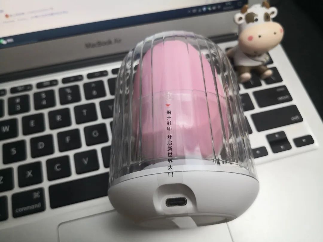 可爱的粉色小墩子,照在琉璃小笼子,简简单单,外观细腻、确实能斩获众人的青睐。揭开罩子,小鸟像是得到了自由,张着嘴巴,吸吮着自由的空气。