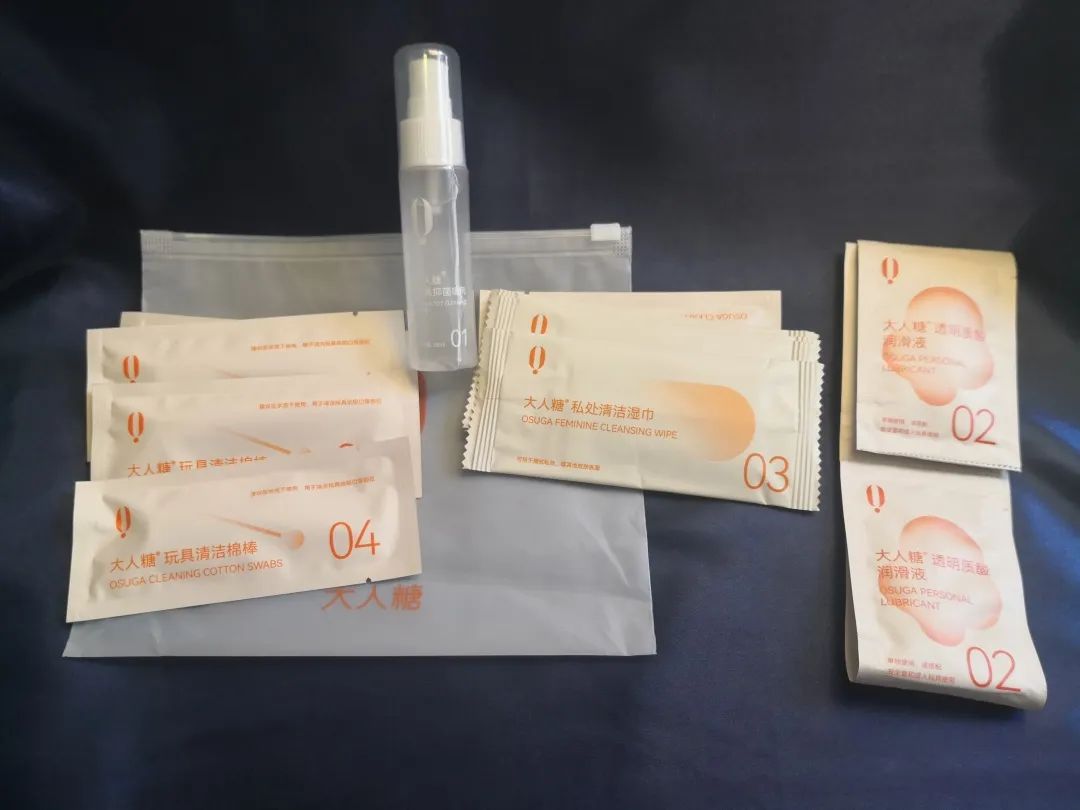 哦~先是一袋辅助包:一个消毒喷剂、润滑液、清洁湿巾、清洁棉棒。然后就要揭开我们的主角~