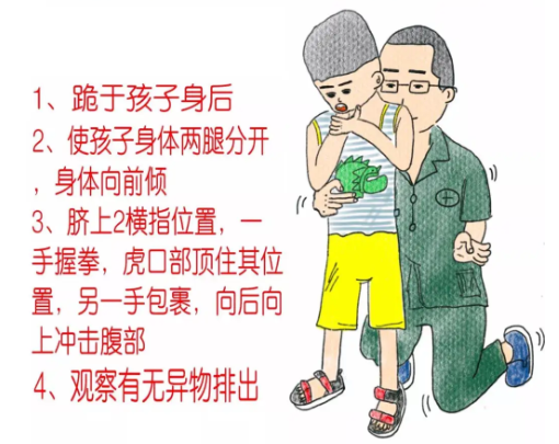 如果是三岁以上的宝宝发生误吞,可采用成人版海姆立克急救法