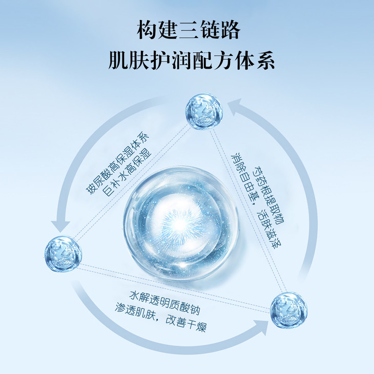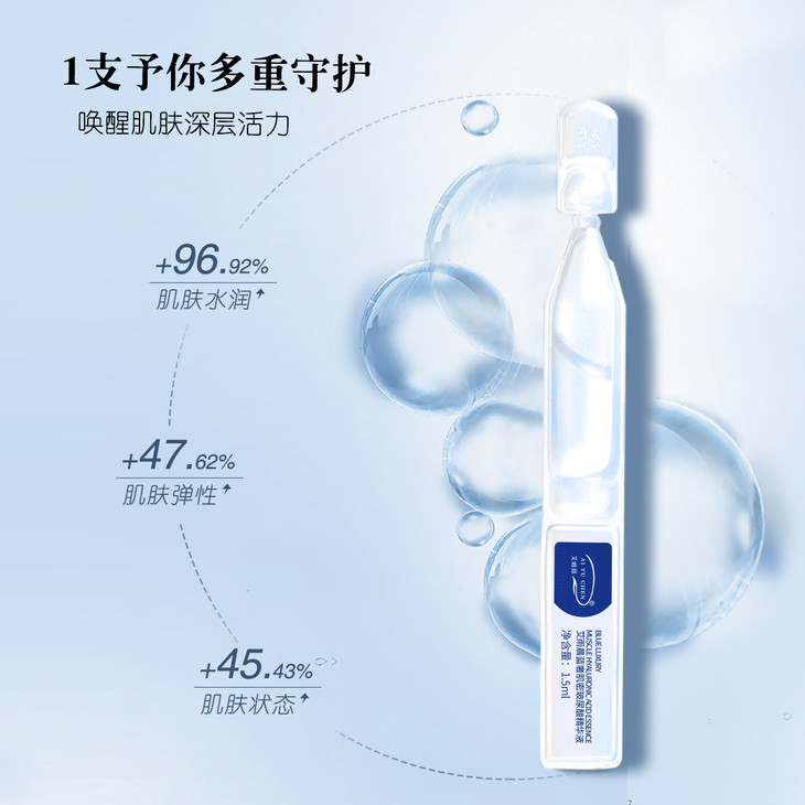 【功效】:甄选华熙生物精纯玻尿酸,凝聚水活科技匠心打造立体水润配方。科学配比不同分子量玻尿酸,多维度补水润泽,保湿加乘,有效缓解肌肤干燥,令肌肤水漾盈润。