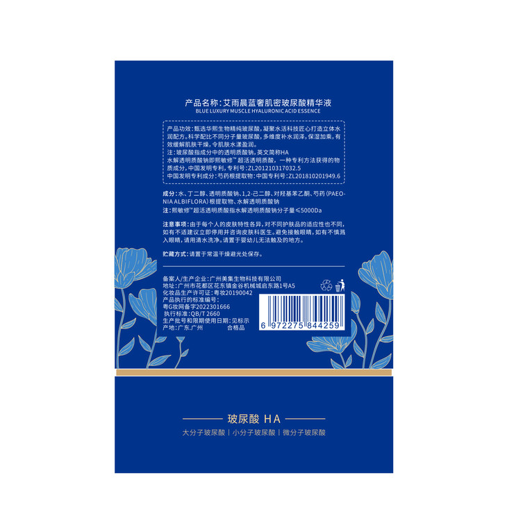 【品名】:艾雨晨蓝奢肌密玻尿酸精华液