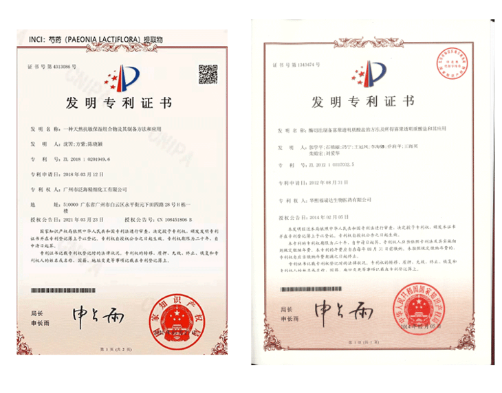 芍药(PAEONIA LACTIFLORA)提取物--专利证书