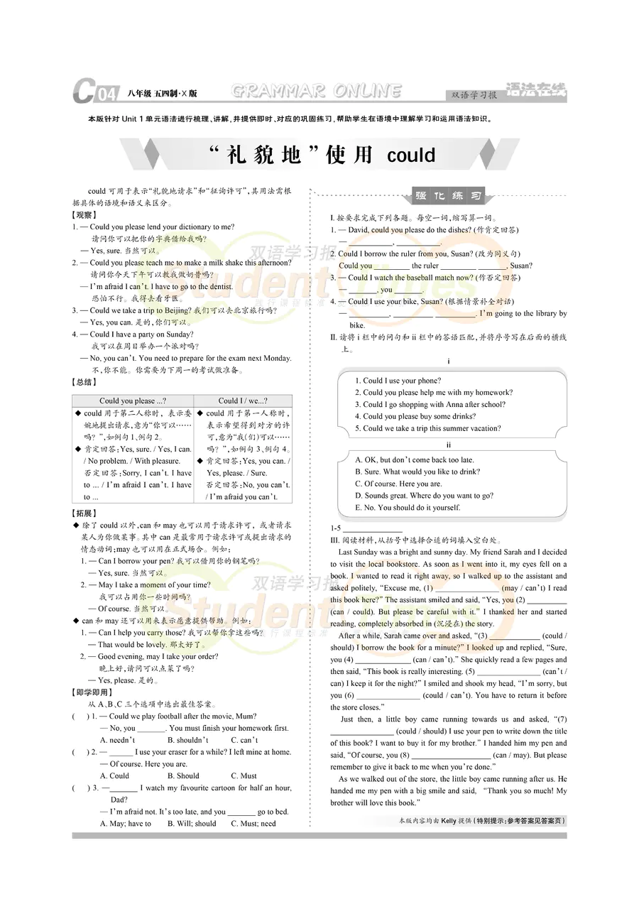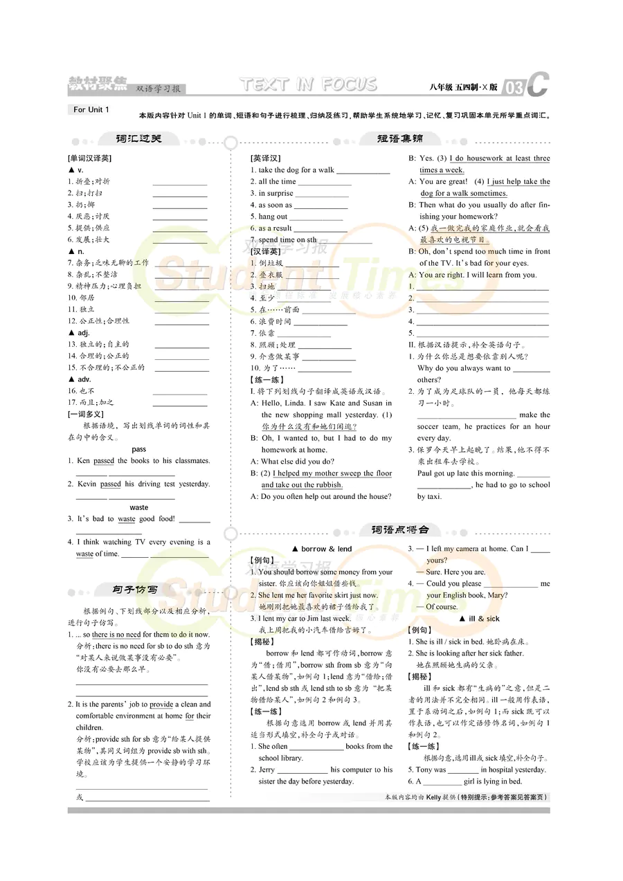 初中英语样报 八年级 五四制 X版 同步辅导 C刊