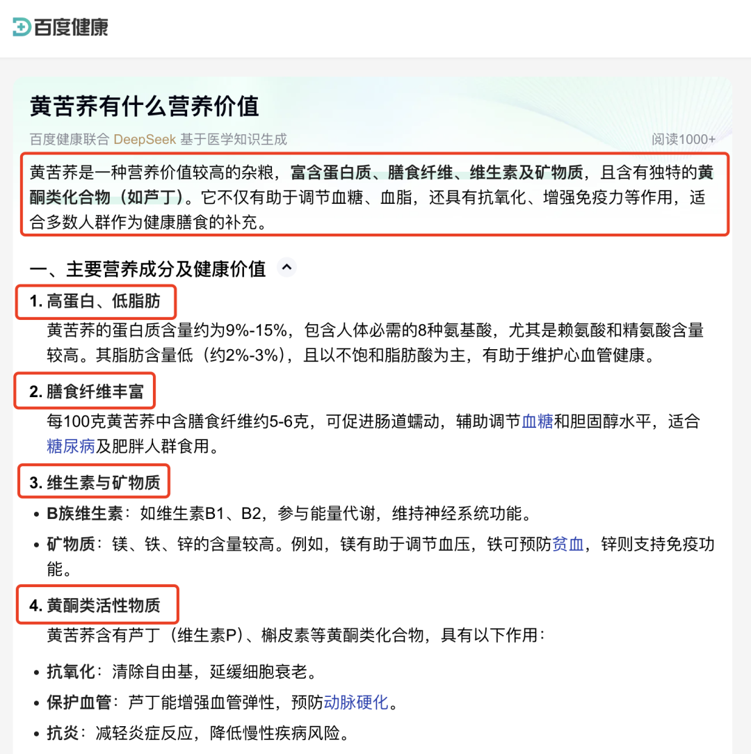 现代科学研究发现,黄苦荞还富含多种对人体有益的营养成分,如蛋白质、黄酮类化合物、不饱和脂肪酸、纤维素、矿物质和维生素等,这些都是人体不可或缺的营养成分!