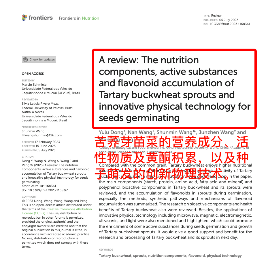 不仅如此,知名学术出版社 Frontiers 也发表过一篇关于苦荞的研究文章。