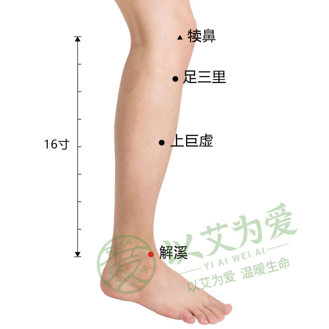 位于小腿外侧,犊鼻下3寸,犊鼻与解溪连线上。该穴位主要功能是燥化脾湿,生发胃气。