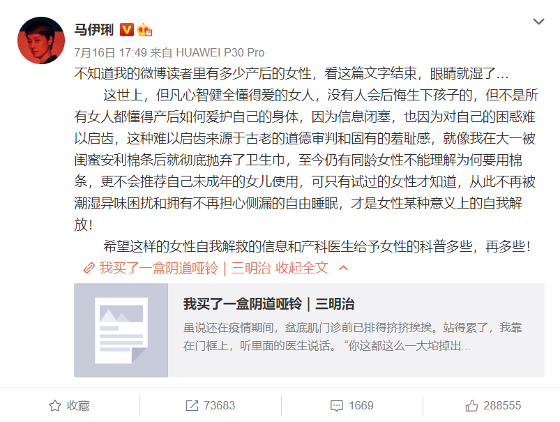 「不知道我的微博读者里有多少产后的女性,看这篇文字结束,眼睛就湿了…