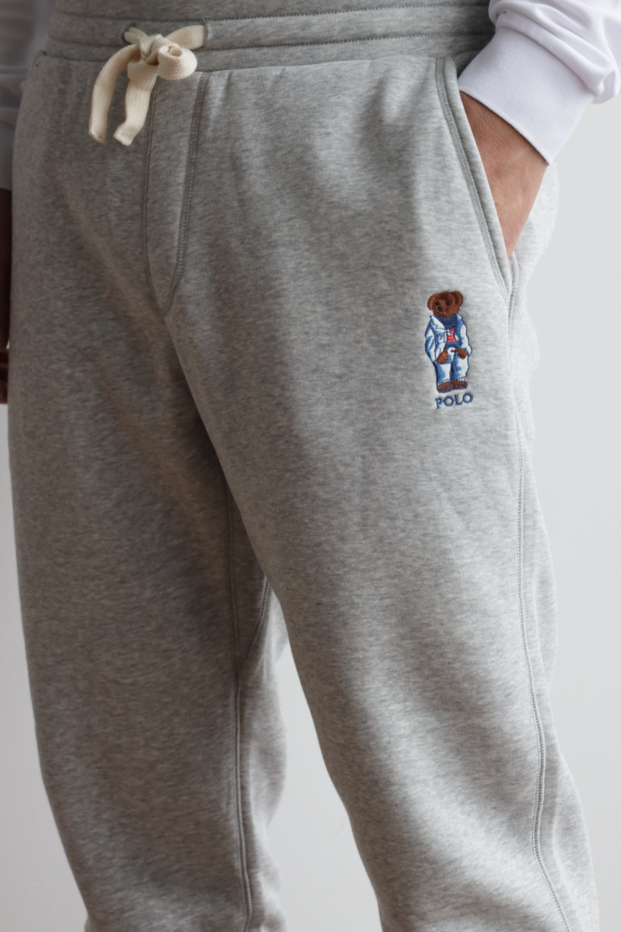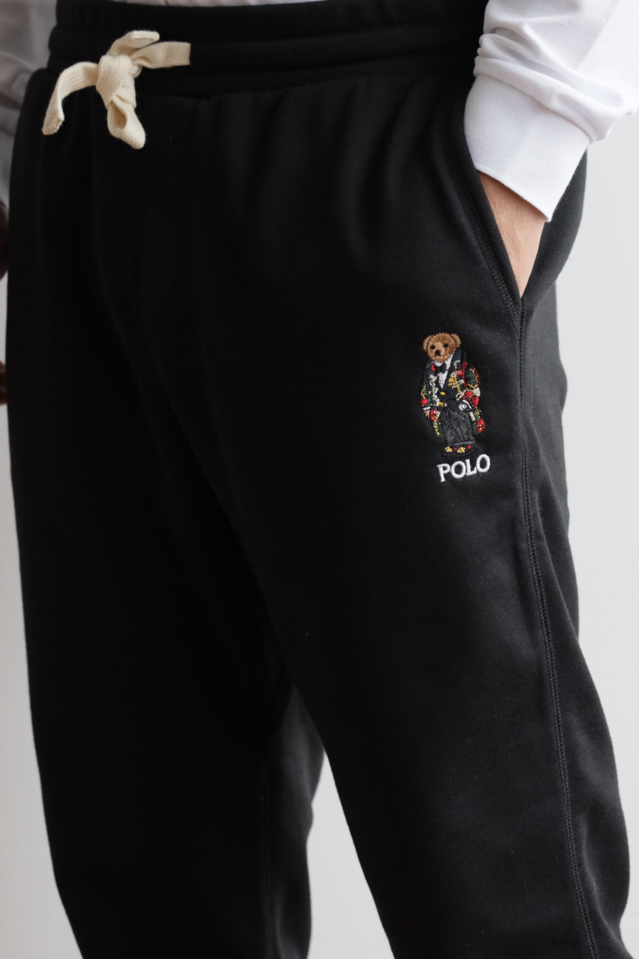 R.L 秋冬款小熊刺绣 加绒收口长裤卫裤
