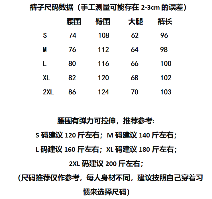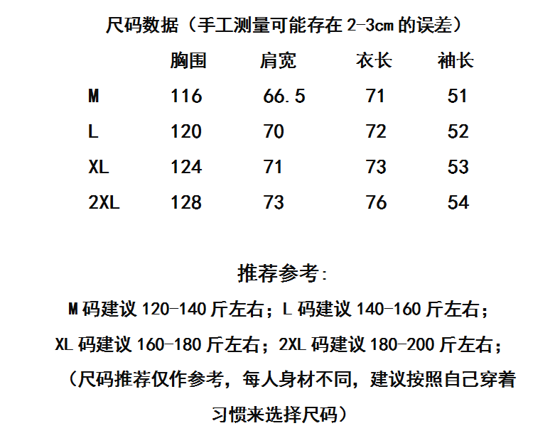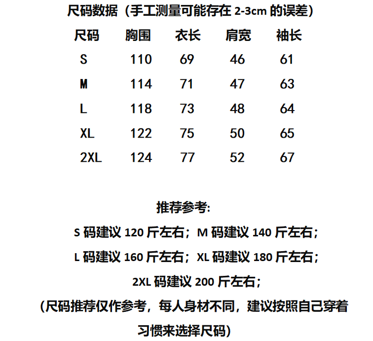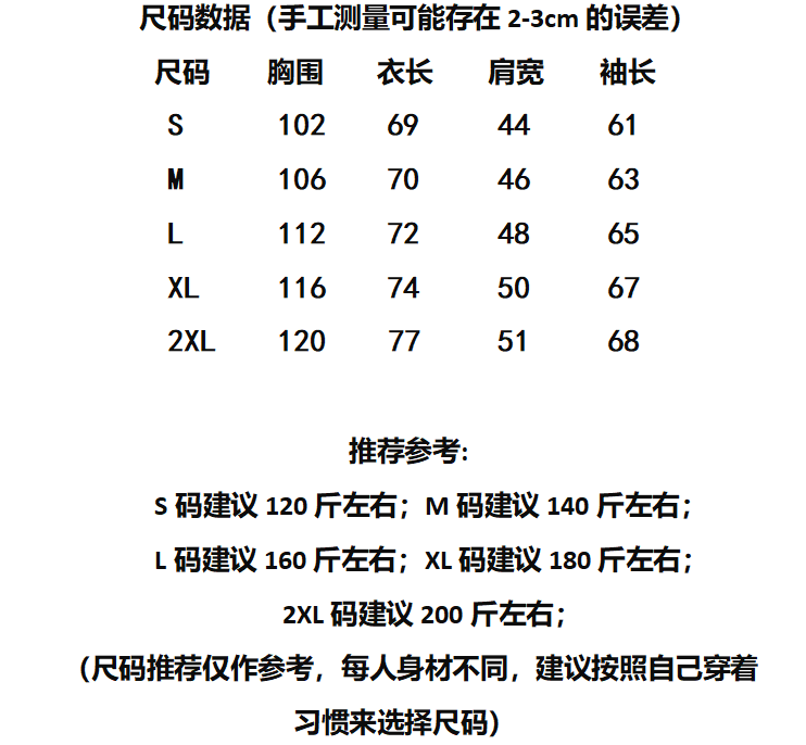 M 80-105斤, L105-120斤,XL120-140斤,2XL140-160斤, 3XL160 -180斤