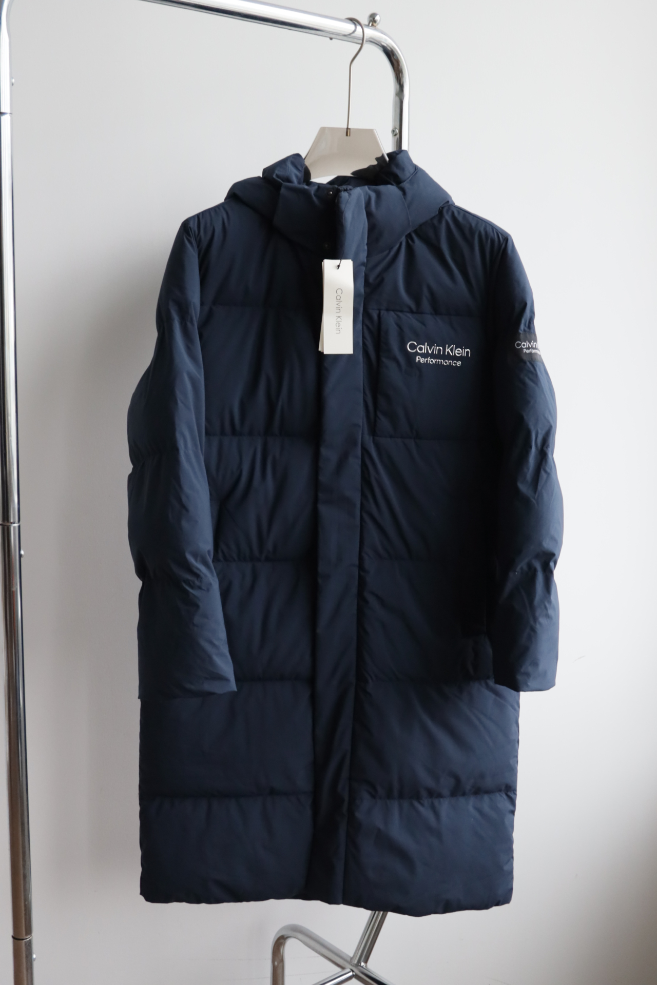 西K元单 热压金属钢印长款白鸭绒羽绒服