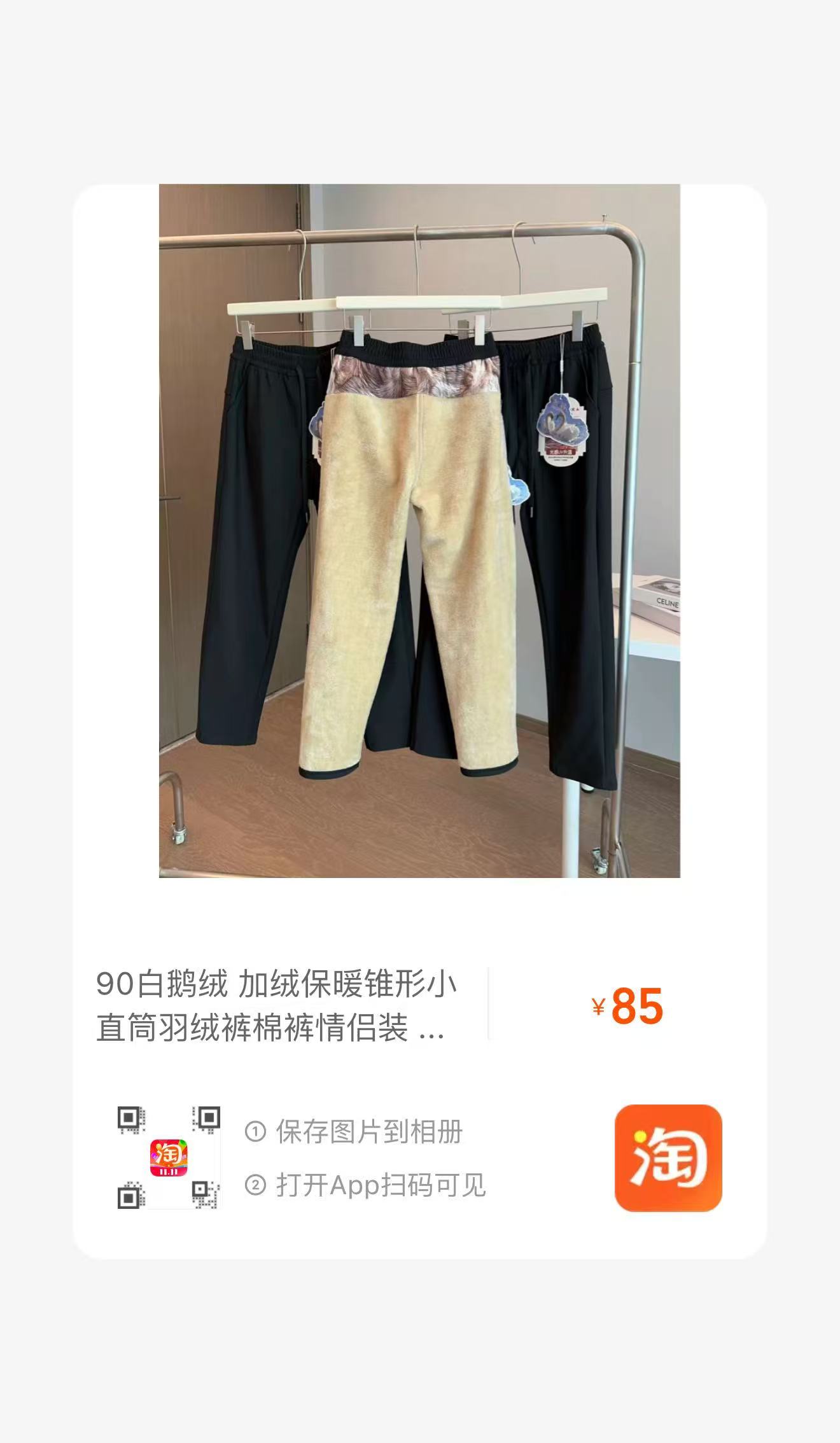 90白鹅绒 加绒保暖锥形小直筒羽绒裤棉裤情侣装